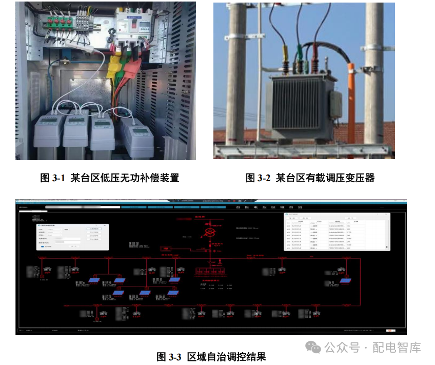3.将分布式光伏影响归类为需要通过调节光伏逆变器出力进行治理的问题。由于传统调控措施对客户收益影响较大,在“电压区域自治”思路上充分拓展开发,深度挖掘电网侧、客户侧设备资源和潜力,融合有载调压配变、智能无功补偿装置、光伏逆变器 3 大核心设备,通过无功、有功柔性调节等手段,兼顾光伏用户发电收益与电压压降效率,建成分布式光伏台区多元协同“区域自治”模式。
